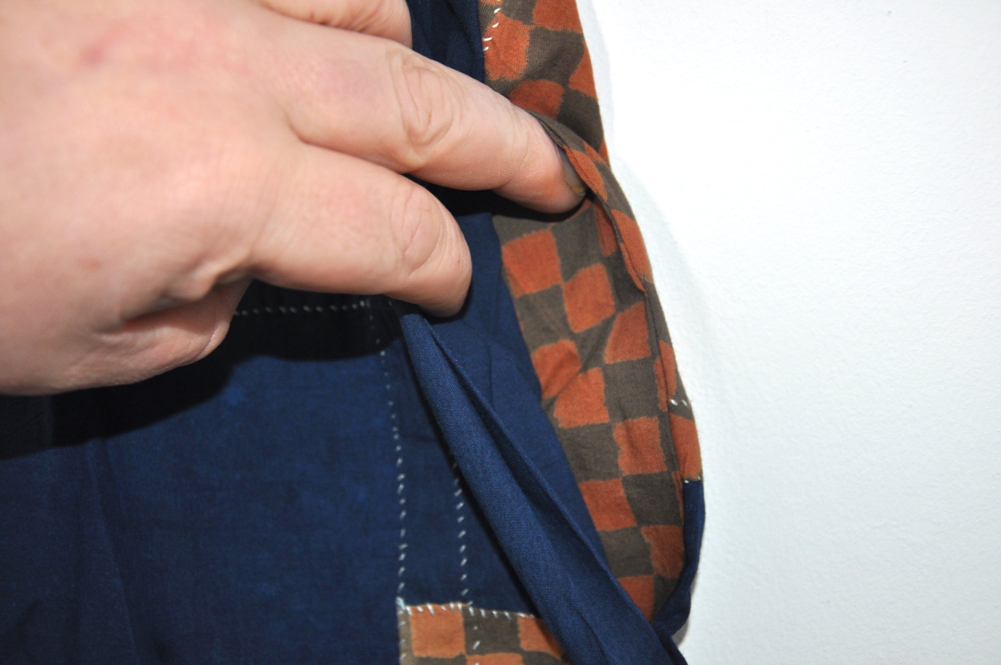 Naturally dyed and block-printed in Ajkhrapur, India. This dress is made from cotton off-cuts from a tailor, that have been hand-stitched together. It has 2 side pockets and it is ankle length.